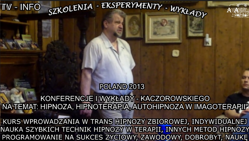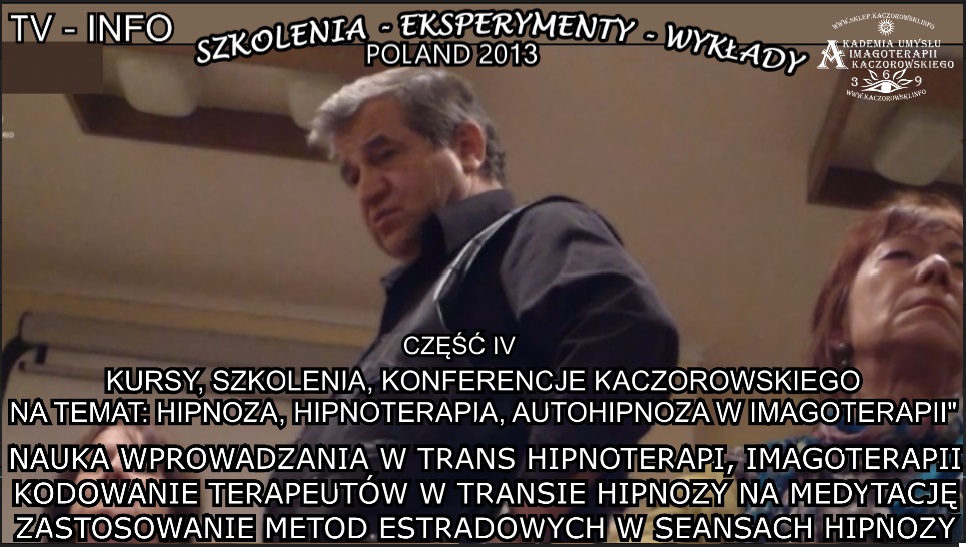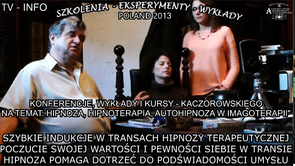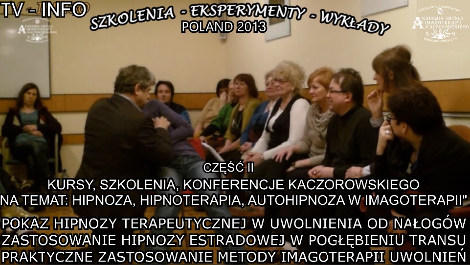 TV INFO 2013 NAUKA WPROWADZANIA W TRANS HIPNOTERAPII, IMAGOTERAPII, KODOWANIE TERAPEUTÓW W TRANSIE HIPNOZY NA MEDYTACJĘ, ZASTOSOWANIE METOD ESTRADOWYCH W SEANSACH HIPNOZY. KURSY, SZKOLENIA, KONFERENCJE KACZOROWSKIEGO NA TEMAT; HIPNOZA, HIPNOTERAPIA, AUTOHIPNOZA W IMAGOTERAPII
